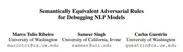 Semantically Equivalent Adversarial Rules for Debugging NLP models