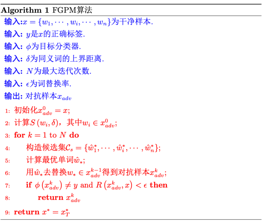 约束到该集合中,算法中还设置了单词替换率的上限,在每次迭代中,FGPM 只通过反向传播计算一次梯度。
