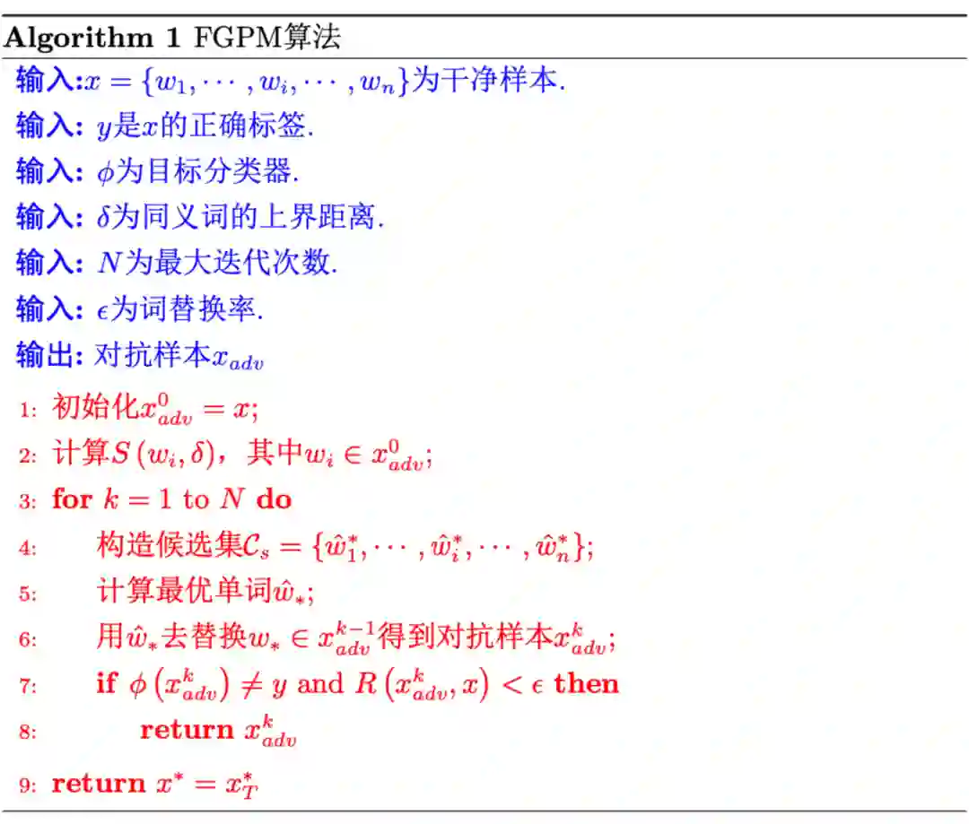 该论文中作者提出了一种基于同义词替换的快速梯度投影方法(FGPM),该方法根据梯度大小和原单词与候选单词在梯度方向上的投影距离的乘积来计算每个替换的得分。
