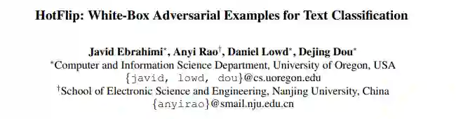 HotFlip: White-Box Adversarial Examples for Text Classification