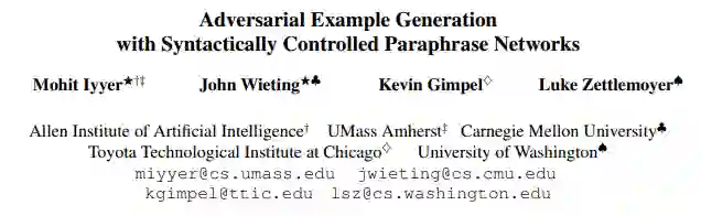 Adversarial Example Generation with Syntactically Controlled Paraphrase Networks