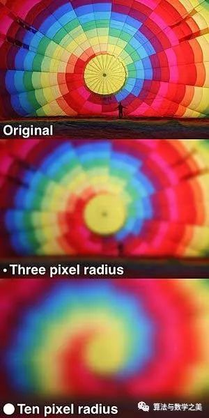 上面分别是原图、模糊半径3像素、模糊半径10像素的效果。模糊半径越大,图像就越模糊。从数值角度看,就是数值越平滑。