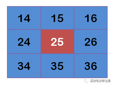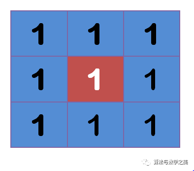 "中间点"取"周围点"的平均值,就会变成1。在数值上,这是一种"平滑化"。在图形上,就相当于产生"模糊"效果,"中间点"失去细节。