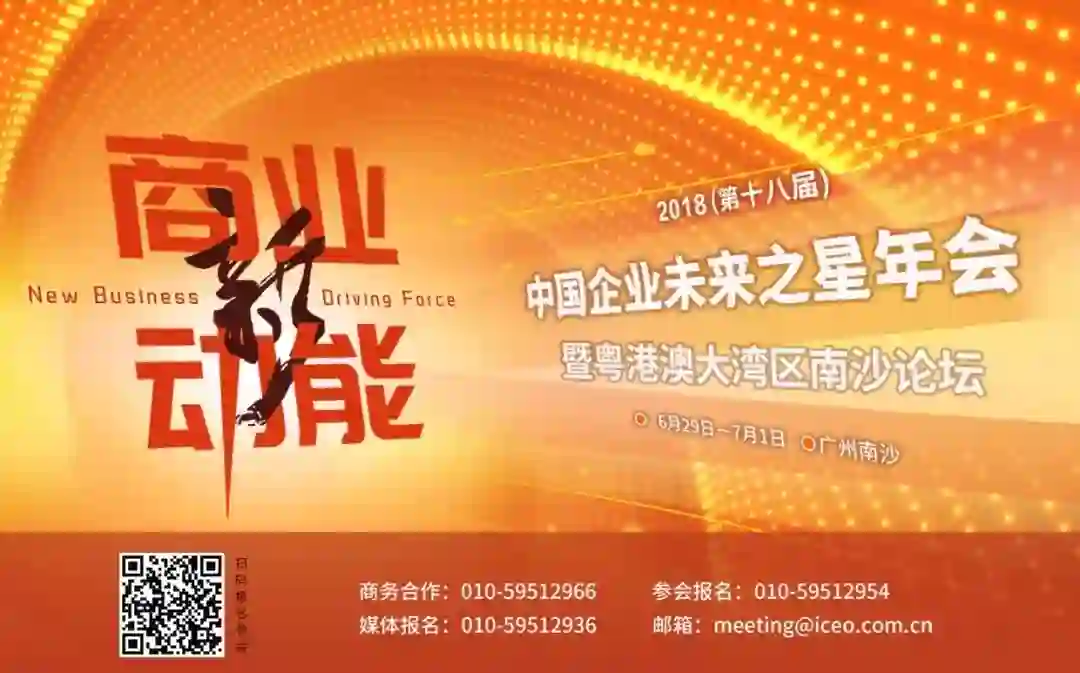 2018(第十八届)中国企业未来之星年会暨粤港澳大湾区南沙论坛将于6月29日至7月1日在广州南沙举行,人工智能、新零售、大健康、金融科技等领域最热门的独角兽公司、数十位顶级投资人、最创新企业领导人齐聚南沙,探讨“商业新动能”,欢迎点击下图报名参会。