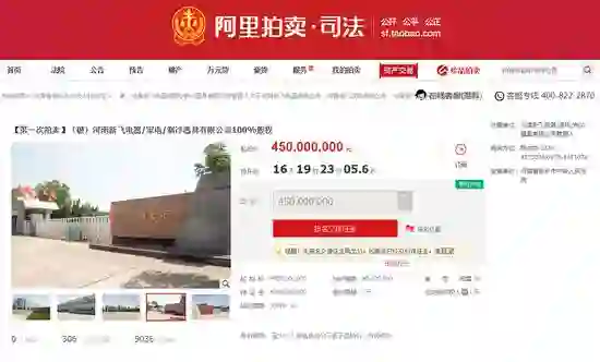 6月11日,据阿里司法拍卖平台消息,河南新飞电器/家电/制冷器具三家公司的全部股权将于本月28日公开拍卖,起拍价4.5亿元;另外,河南新飞电器名下部分土地、房产及建筑将于7月5日开始拍卖,起拍价1.15亿元。