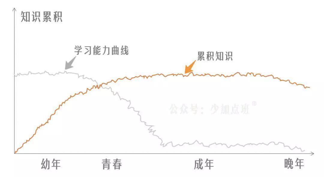 只要一个人的“学习能力”不是负数,累积的知识(新增知识减去遗忘部分)还是呈上升走势的。
