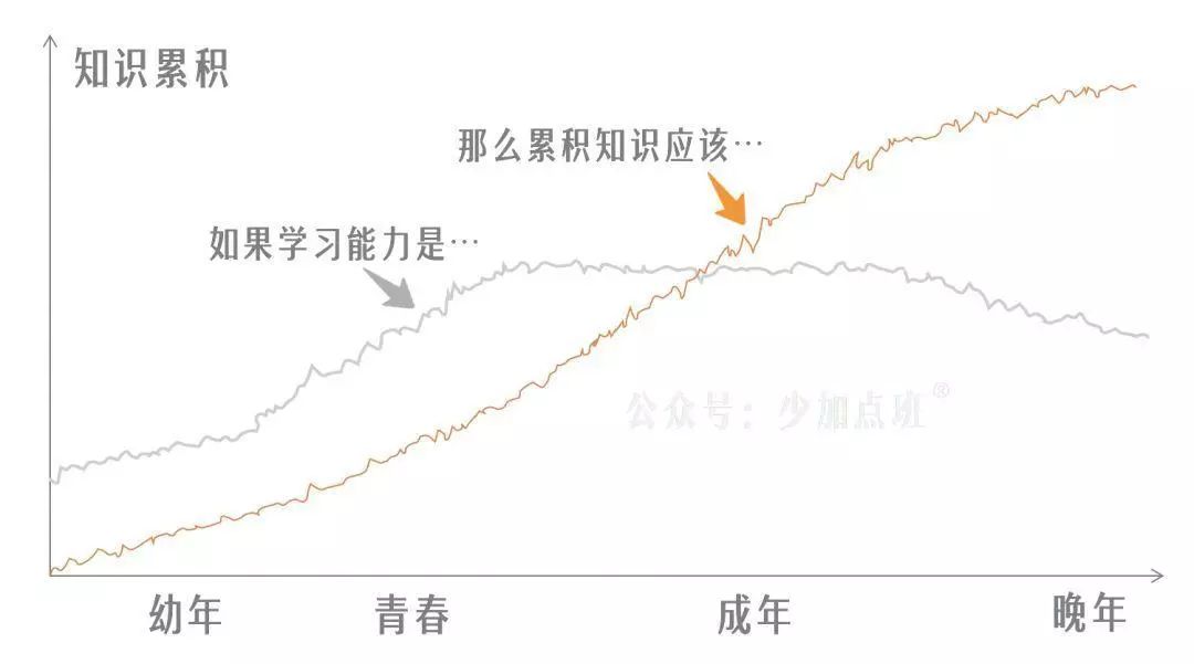 知识量的增长掩盖了学习能力下降的事实,甚至不少人直接就将知识量与学习力划上等号。这导致我们产生“学习能力一直在提升”的错觉。