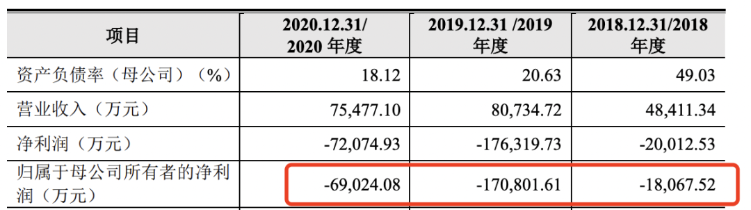 归母净利润分别为-1.81亿元、-17.08亿元、-6.90亿元,即3年亏损约25.79亿元。