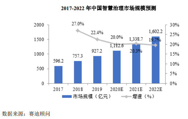 在智慧治理领域,AI解决方案主要服务公安、政法、交通、应急等政府和企事业单位,2022年市场规模有望突破1,600亿元。