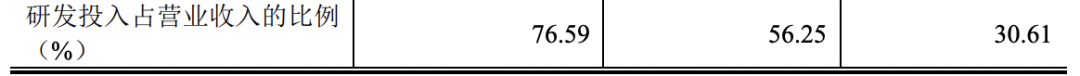这三年研发投入占各期营收比例分别为31%、56%和77%。