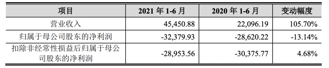 2021年上半年,云从科技营收为4.55亿元,较上年同期的2.2亿增长105.70%。