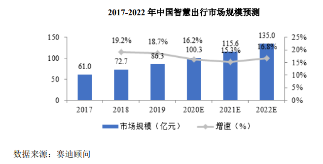 在智慧出行领域,AI解决方案以机场航司作为切入口, 探索「空陆联运」,联动客运公交、地铁、高铁、城市轨交、公交,2022年中国智慧出行市场规模有望达到135亿元。