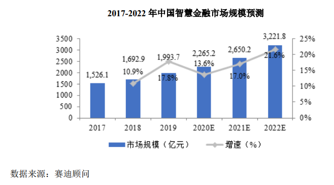 在智慧金融领域,AI解决方案为金融机构客户提供数字化身份认证及生物特征识别、智慧网点数字化运营管理、刷脸支付、信贷风险管理等场景的解决方案,2022年我国智慧金融市场规模将突破3,000亿元。