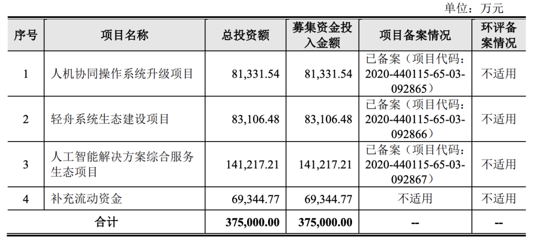根据注册稿显示,云从科技拟募资约37.5亿元,主要用于人机协同操作系统升级项目、轻舟系统生态建设项目、人工智能解决方案综合服务生态项目等。