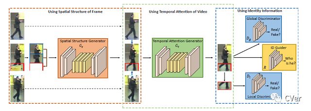 针对视频行人重识别的部分遮挡问题,我们提出了一个时空补全网络(Spatio-Temporal Completion network, STCnet)用来精确的恢复遮挡部位的信息。一方面,STCnet利用行人的空间结构信息,从当前行人帧中未被遮挡的身体部位信息预测出被遮挡的身体部位。另一方面,STCnet利用行人序列的时序信息去预测被遮挡部位。通过联合STCnet和一个行人再识别网络,我们获得了一个对部分遮挡鲁棒的视频行人再识别框架。在当前主流的视频行人再识别数据库(iLIDS-VID, MARS, DukeMTMC-VideoReID)上,我们提出的框架都优于当前最好的方法。