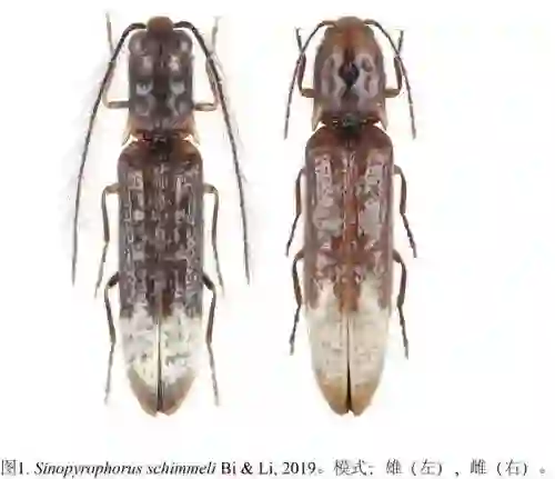综合形态学证据和分子系统发育分析证据,进化基因组学与基因起源课题组证明该种代表叩甲科一个新的亚科(Sinopyrophorinae Bi & Li, 2019) ,为一新属(Sinopyrophorus Bi & Li, 2019)新种,并命名为Sinopyrophorus schimmeli Bi et Li, 2019。该发现打破了发光叩甲仅分布在拉丁美洲和大洋洲的观点,同时也表明中国西南地区在昆虫地理演化中的重要地位。该发光叩甲的发现也为探讨生物荧光的起源与进化提供了一个重要的研究系统。