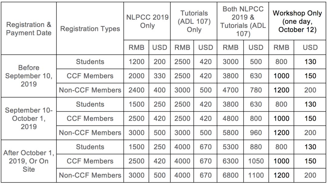 7. If you register for NLPCC 2019, you can also attend Workshop (October 12).