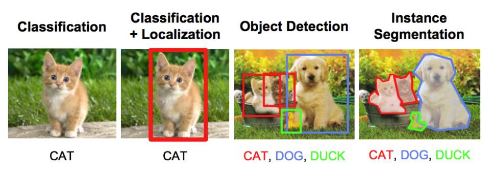 物体检测:在物体检测中,你的任务是找到图像中多个物体的各自位置。这些物体可能属于同一类别,或者各自不同。