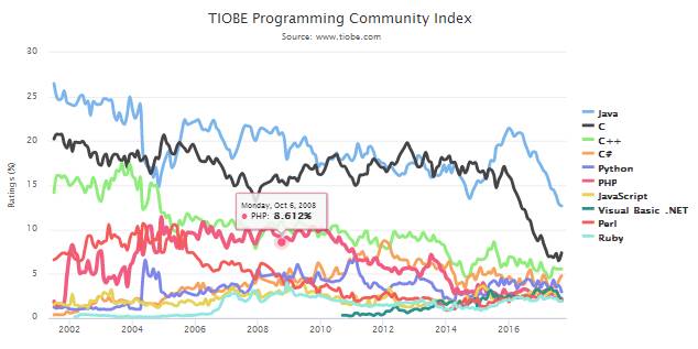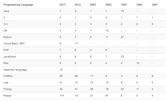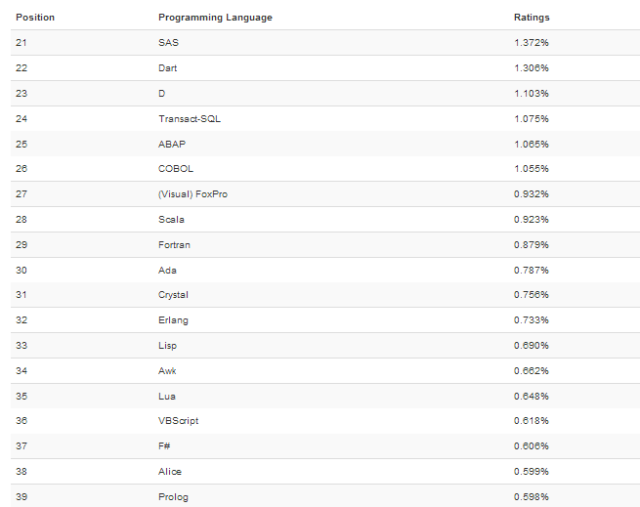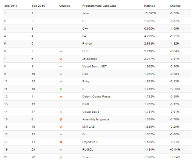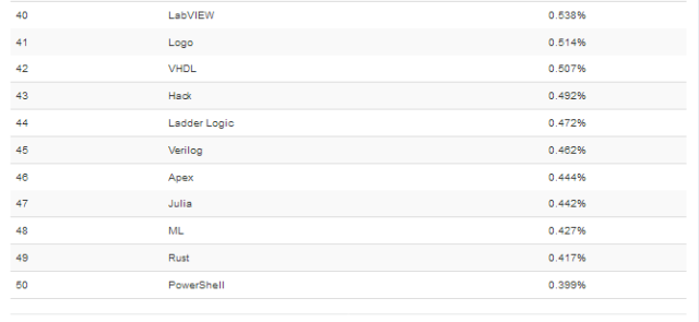 这个排行榜可以用来考查你的编程技能是否与时俱进,也可以在开发新系统时作为一个语言选择依据。