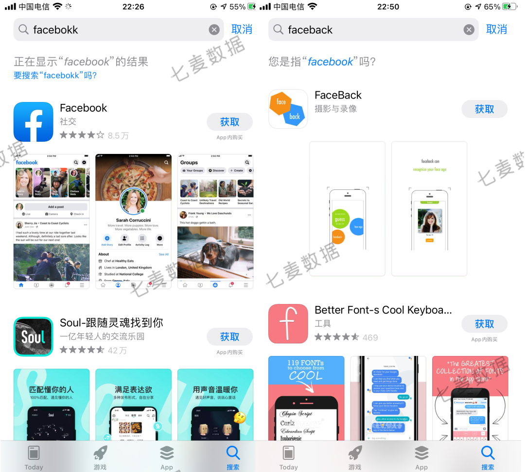 在 App Store 搜索框输入错误关键词时,系统会提示该关键词有误。经测试发现:⽬前只在英⽂语境、纯数字情况下会出现,且⼀般搜索词越接近正确的关键词或接近一些大牌词时被纠正的⼏率越⼤。