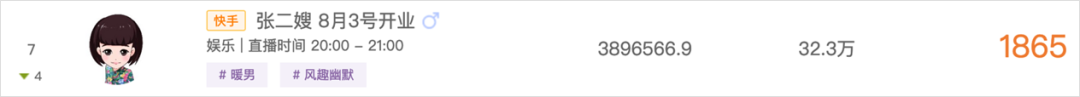 在小葫芦数字红人榜的收入榜上,@张二嫂 在 7 月的直播礼物收入高达389 多万元,月活观众超过 30 万人。