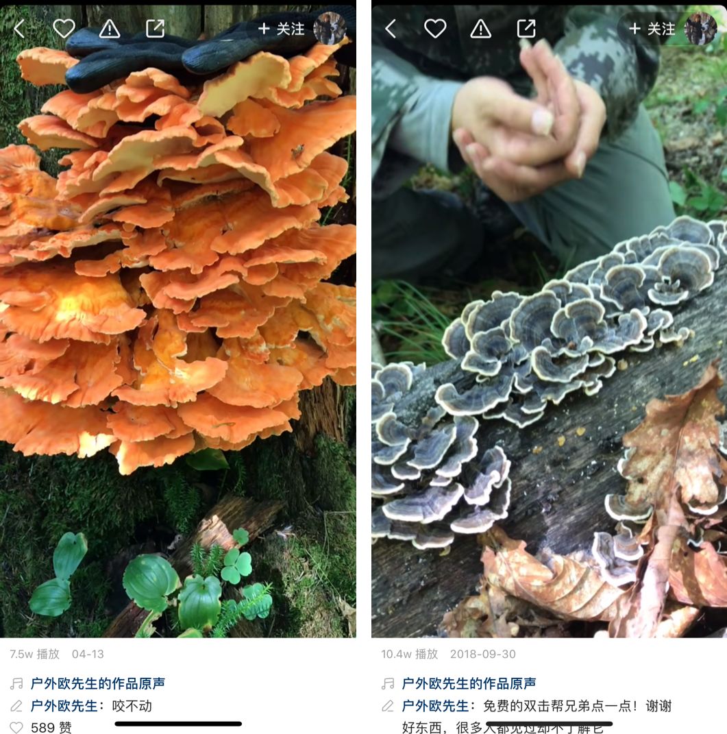 来自黑龙江七台河的@户外欧先生 就通过快手,将黑龙江东部完达山脉里的丰富山货(木耳、元蘑等)推销给了全国上千万的快手用户。