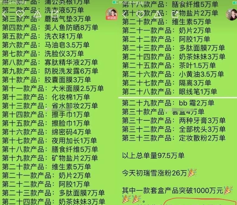 来自黑龙江的@辛巴818 常常以秒杀形式进行直播,曾经卖一款洗发水产品,3 分钟内 5 万单销售一空。
