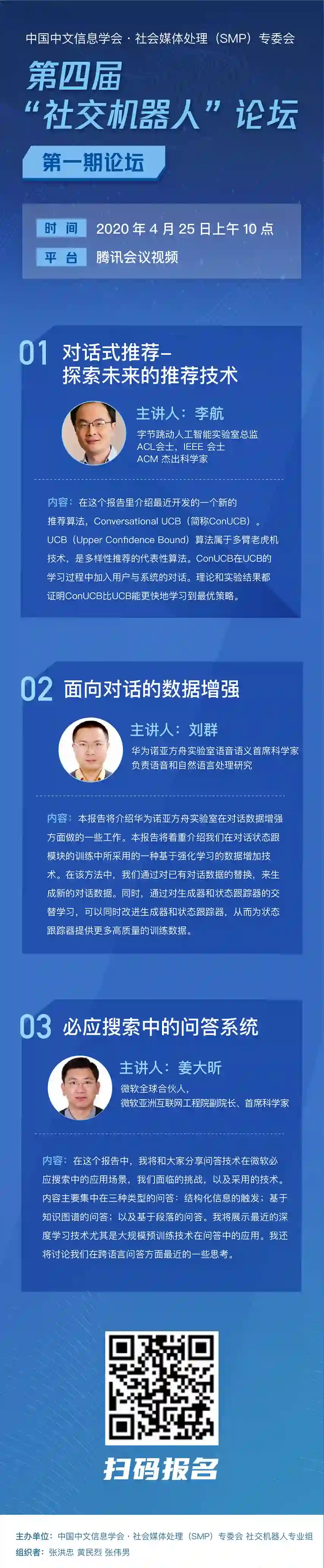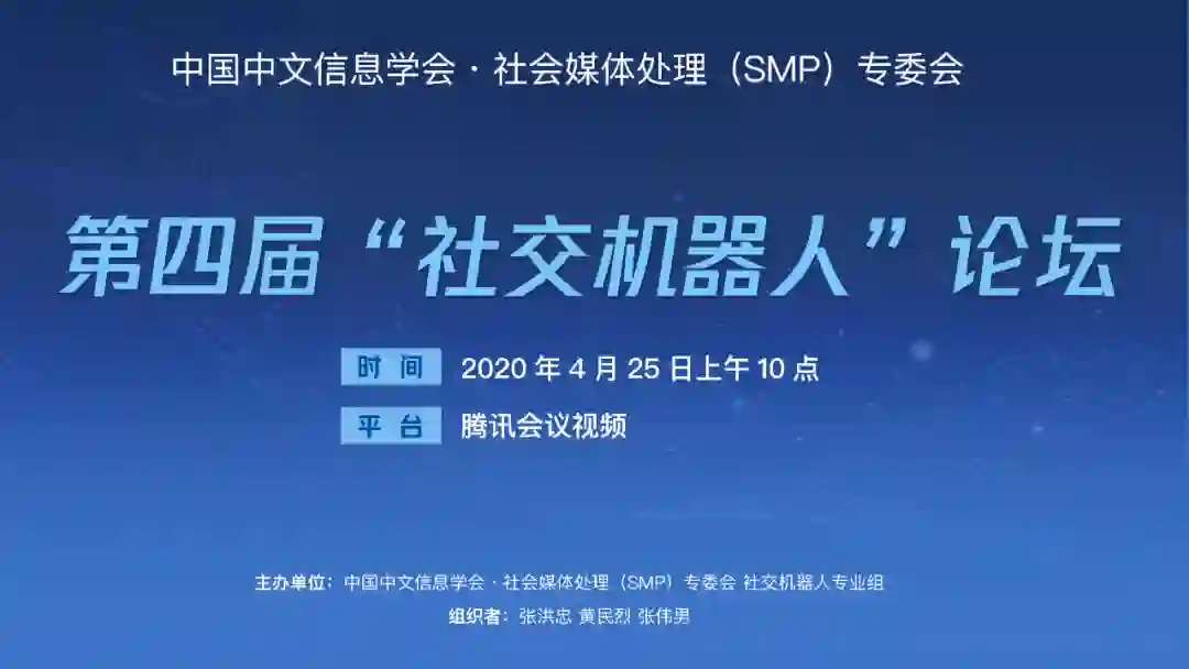 第四届社交机器人论坛将在线上举办,本届论坛分三期举行。