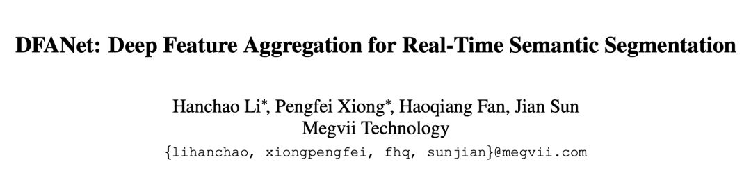 论文名称:DFANet: Deep Feature Aggregation for Real-Time Semantic Segmentation