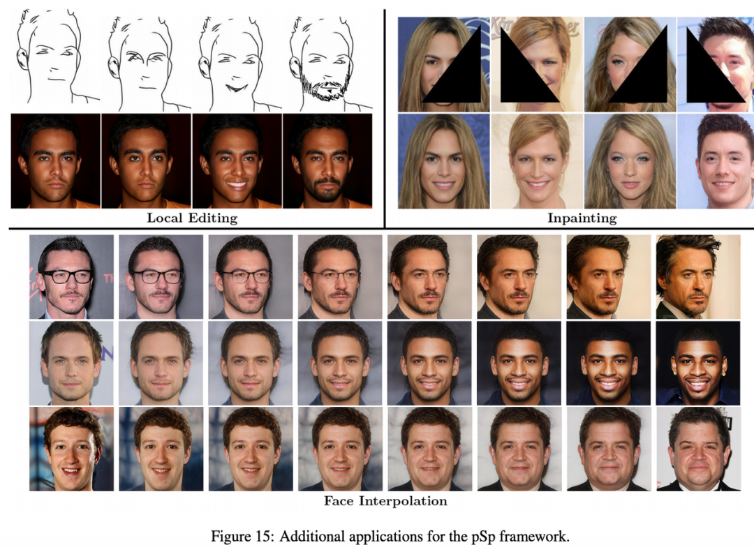 pSp可应用于基于分割图的人脸生成、超分辨率任务、图像修复等任务。