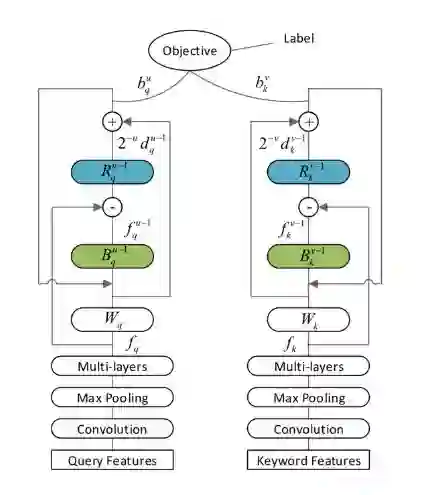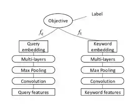 如图 3 所示,RBE 模型旨在为搜索广告中的查询和关键词,生成紧凑的向量表征。RBE 模型是基于 CLSM 模型 [8] 构建而成(CLSM 模型架构如图 2 所示)。