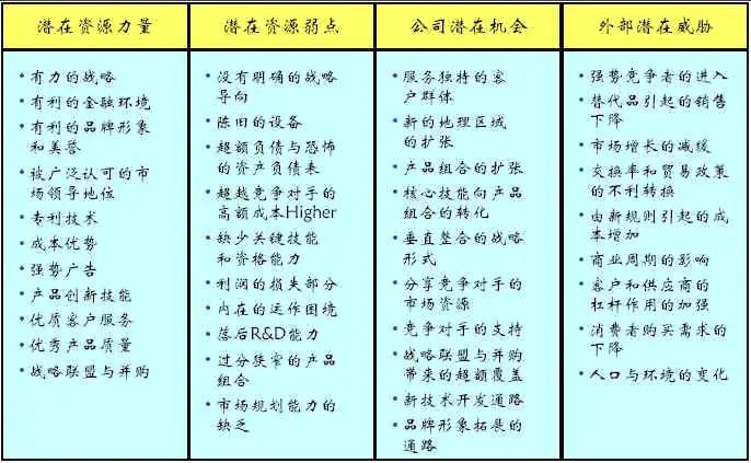 最简单的产品定位可以采用SWOT分析制定: