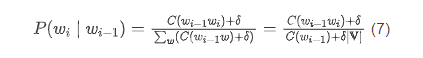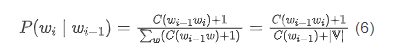 以 bigram 语言模型为例,使用加 平滑之后的条件概率为: