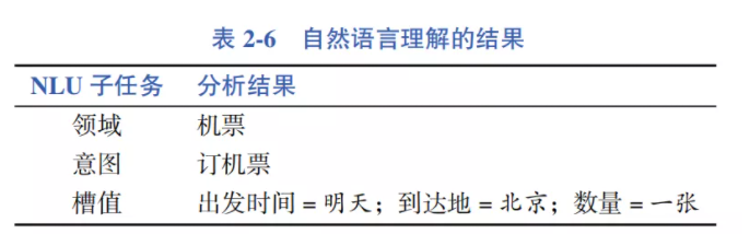 自然语言理解的结果如表 2-6 所示。