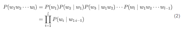 通过以上的条件概率,可以进一步计算一个句子出现的概率,即相应单词序列的联合概率 ,式中 为序列的长度。