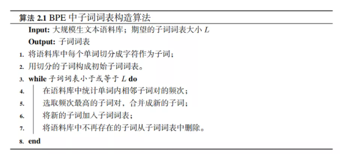 重复以上过程,直到子词词表大小达到一个期望的词表大小为止。