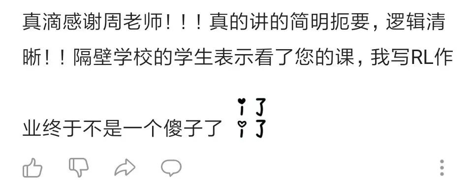 今年 3 月份,受疫情影响,宅在家上课的周老师做出了一个决定:把自己每周的《强化学习纲要》课程用中文讲一遍,并上传到 B 站。这一消息吸引了上万人围观。这可能也是全网第一个中文强化学习课程。
