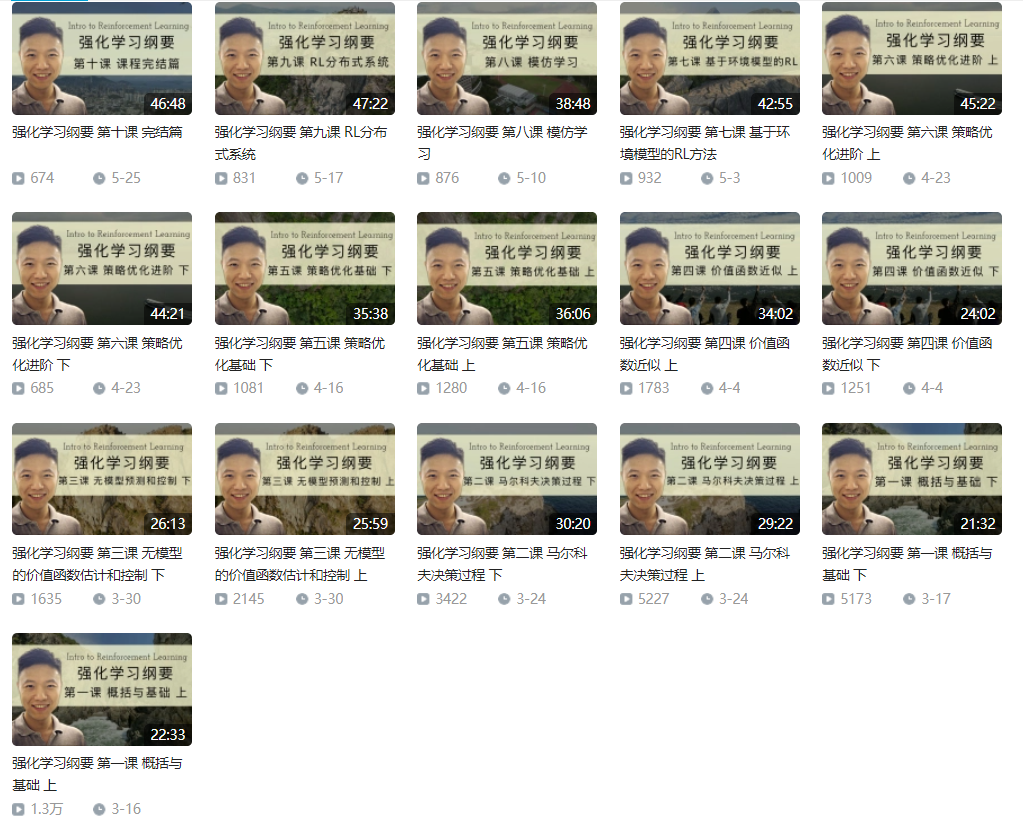 历时两个多月,本周一,香港中文大学信息工程系助理教授周博磊的中文强化学习课程终于完结了。