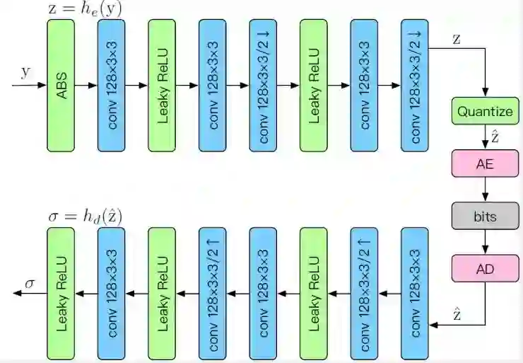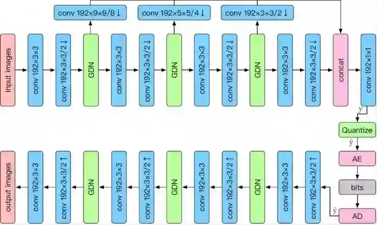 ,生成离散向量。然后使用算术编码等熵编码技术将量化后的离散数据进行无损压缩,然后压缩后的比特流被用于传输。在接收端,接收到比特流后,然后使用解码器从量化后的变量中重建出原图