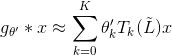 的最大特征值(即谱半径)缩放后的特征向量矩阵)的Chebyshev多项式,进行这个shift变换的原因是Chebyshev多项式的输入要在 [-1,1]之间