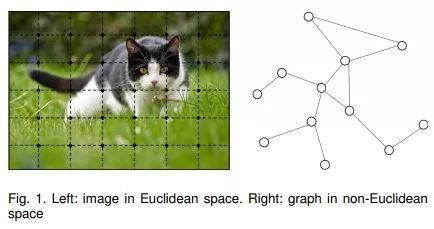 图像和自然语言,都属于欧式空间Euclidean Structure的数据,欧式空间的数据的特点就是结构很规则。但是现实生活中,其实有很多很多不规则的数据结构,典型的就是图Graph结构,或称拓扑结构,如社交网络、化学分子结构、知识图谱等等;即使是语言,实际上其内部也是复杂的树形结构,也是一种图结构;而像图片,在做目标识别的时候,我们关注的实际上只是二维图片上的部分关键点,这些点组成的也是一个图的结构。