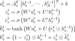 这里只介绍一下基于GRU的GGNN,传播过程可以表示为: