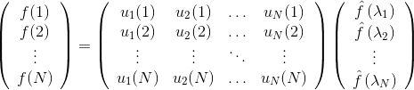 而在图结构中,同理,把Graph中N维向量表示为若干个正交函数的线性组合,自然而然地想到了图拉普拉斯矩阵的特征向量。所以,仿照传统傅里叶变换,在图结构中的离散傅里叶定义如下: