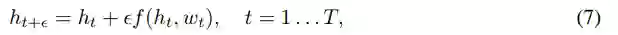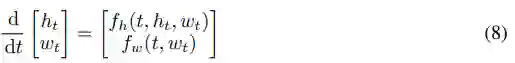 来构建残差网络的连续深度变体。这样产生一个微分方程,该方程将隐藏单元进化描述为深度 t 的函数。由于标准残差网络每层使用不同的权重进行参数化,因此该研究用 w_t 表示第 t 层的权重。此外该研究还引入一个超网络(hypernetwork) f_w,它将权重的变化指定为深度和当前权重的函数。然后将隐藏单元激活函数的进化和权重组合成一个微分方程: