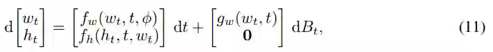 然后该研究在给定输入下评估了该网络需要边缘化权重和隐藏单元轨迹(trajectory)。这可以通过简单的蒙特卡罗方法来完成,从后验过程中采样权重路径 {w_t},并在给定采样权重和输入的情况下评估网络激活函数 {h_t}。这两个步骤都需要求解一个微分方程,两步可以通过调用增强状态 SDE 的单个 SDE 求解器同时完成: