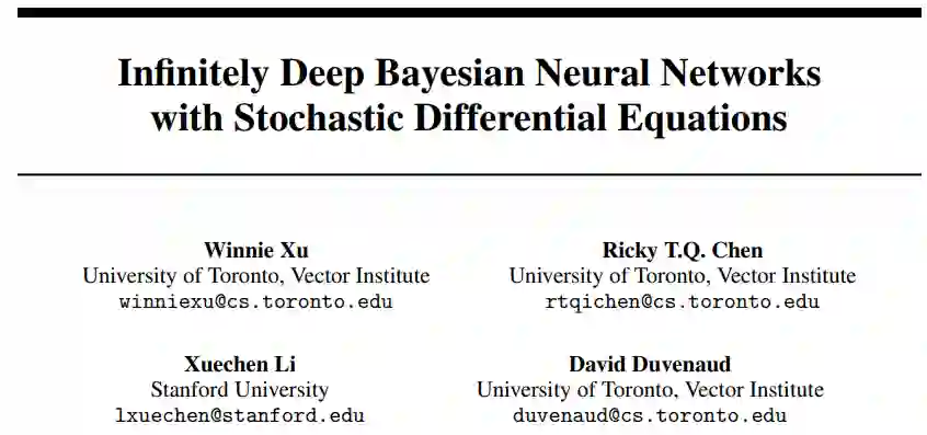 近日,来自多伦多大学和斯坦福大学的一项研究表明贝叶斯连续深度神经网络的替代构造具有一些额外的好处,开发了一种在连续深度贝叶斯神经网络中进行近似推理的实用方法。该论文的一作是多伦多大学 Vector Institute 的本科学生 Winnie Xu,二作是 NeurIPS 2018 最佳论文的一作陈天琦,他们的导师 David Duvenaud 也是论文作者之一。
