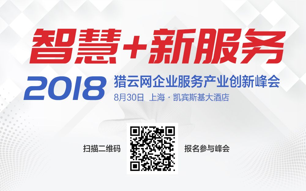 # 智慧+新服务:猎云网2018年度企业服务产业创新峰会 # 将于8月30日在上海凯宾斯基大酒店举办。上海浦东新区经科委联手猎云网强势启动,携手众多行业先锋领袖,共同探讨企业服务行业新风向!企业服务作为下一个万亿级市场,未来3到5年将呈现什么样的发展趋势?投资人看中企业发展哪些方面?8月30日,行业大咖一一解答,期待您的莅临!