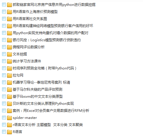 本公众至今已推送上千个数据分析项目的实战案例,由于360网盘停服后,下载链接部分失效了。最近终于有时间整理下来。手把手带你玩各种数据分析案例,涵盖数据分析工具使用,数据挖掘算法原理与案例,深度学习,机器学习,R语言,Python编程,爬虫。