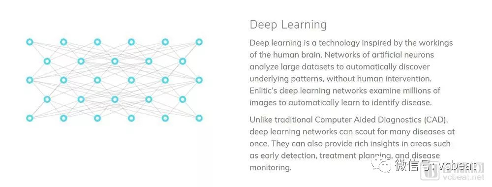 目前,Enlitic主要用于放射科的疾病诊断,与传统方法相比,Enlitic诊断更快速、更准确、花费更少。