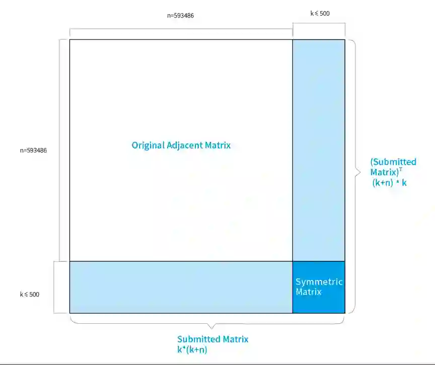 参赛选手可以添加不超过 500 个新的节点,达到干扰图数据的结果。每个新的节点最多只能有 100 条边。包含了新节点的图将会干扰分类器,降低分类器的性能。如果降低的幅度越大,干扰的效果就越好。